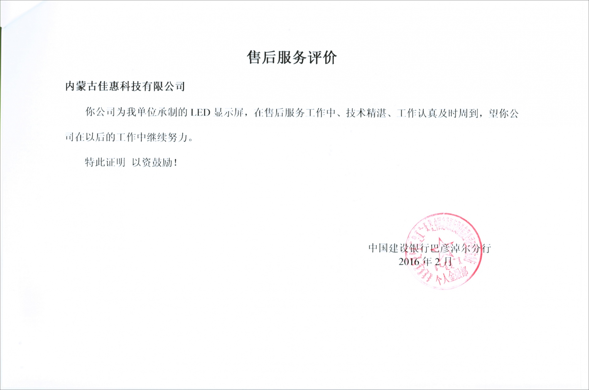 下一條中國建設銀行內蒙古分行鄂爾多斯優質服務證書