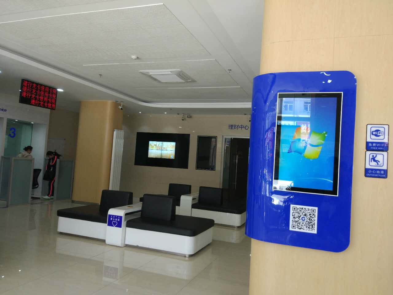 我公司為某銀行內蒙古分行承建的智慧多媒體顯示設備可以實現金融信息實時發布,如利率、外匯牌價、基金、債券、黃金、財經新聞等,并輔以金融知識、電子理財、銀行業務介紹,員工培訓,銀行內部或外部廣告發布平臺,文化宣傳平臺,以創建品牌示范窗口,并利用創新科技塑造新的服務體驗、業務的創新,為企業云計算、大數據、移動互聯網的深度融合奠定了堅實的基礎,實現規模經濟,提升效率和降低成本,達到有效的客戶管理和高效的營銷績效的目的。